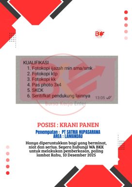 INFO LOKER DI PT SATRIA HUPASARANA AREA LAMANDAU Posted on 3 Desember 2025 by LPP ENTER BORNEO 0 Informasi selengkapnya: https://www.instagram.com/bkkenterborneo?igsh=MTFoY2N0bHh5czl1bg== Continue Reading